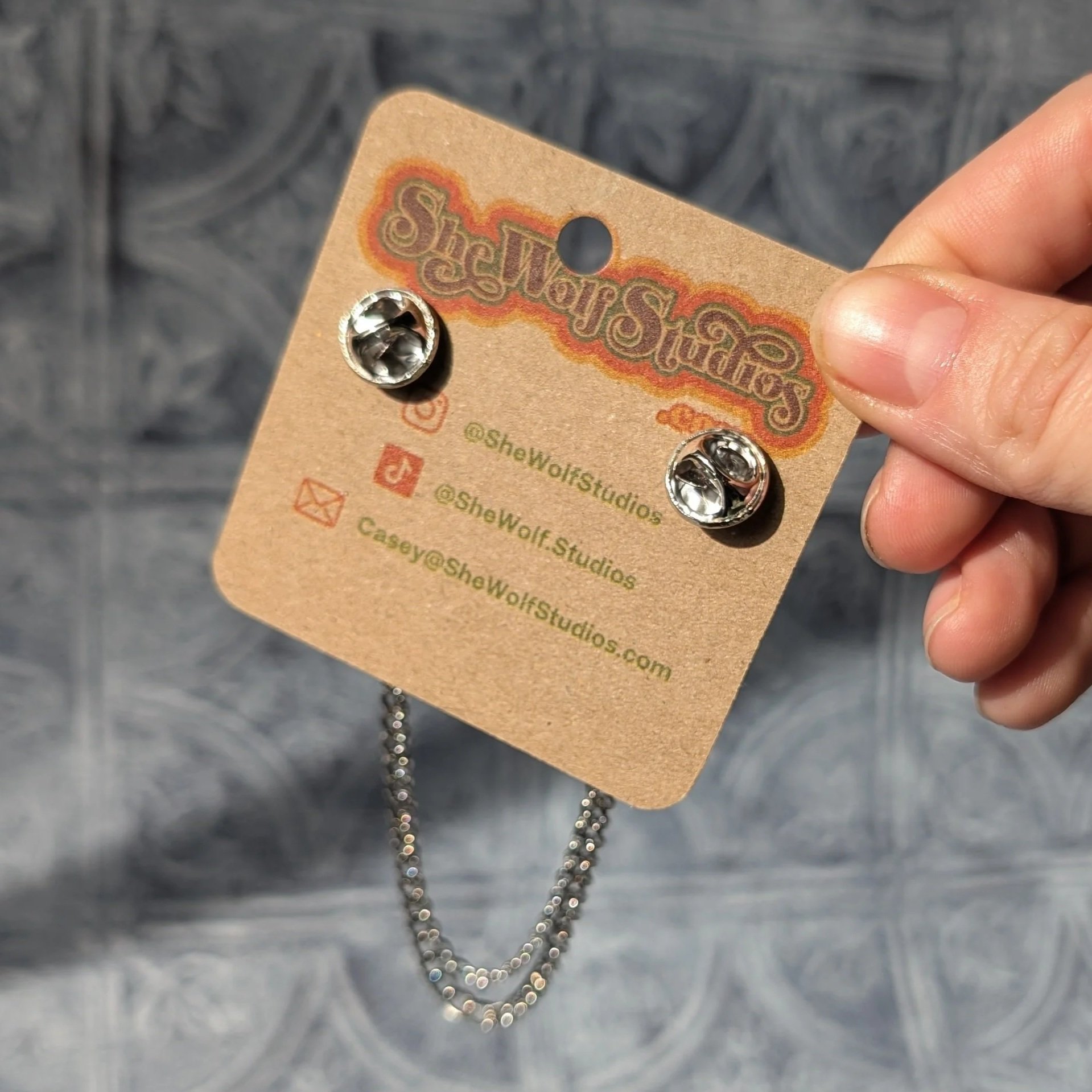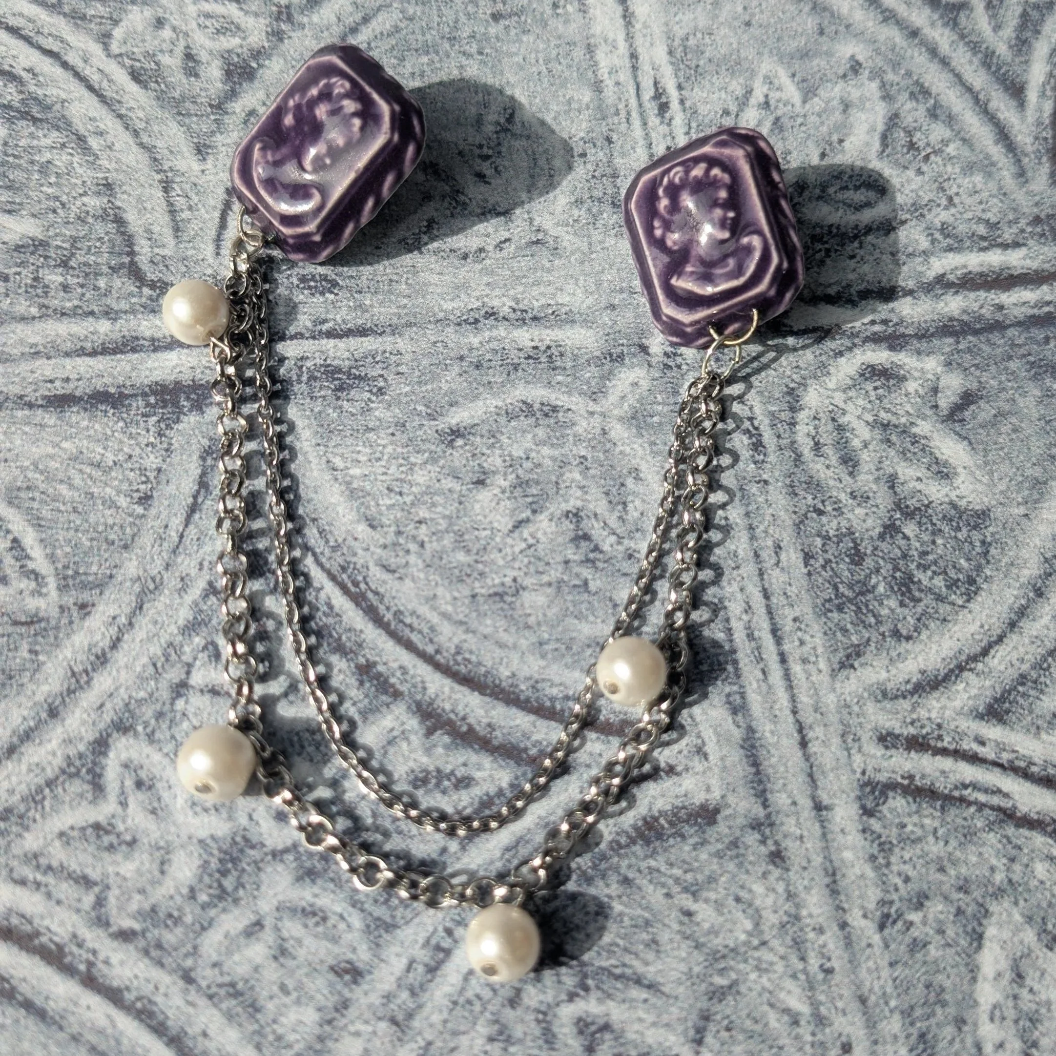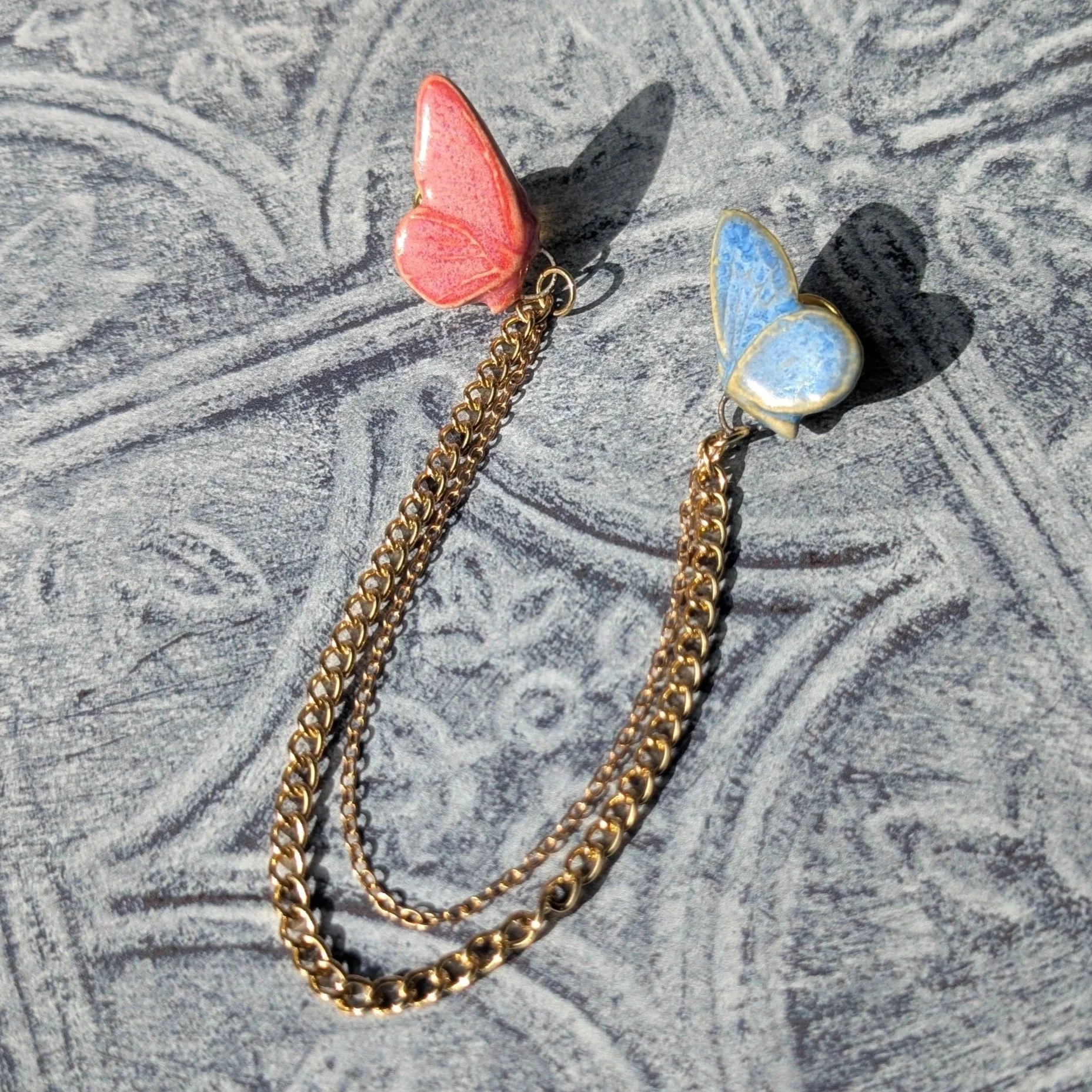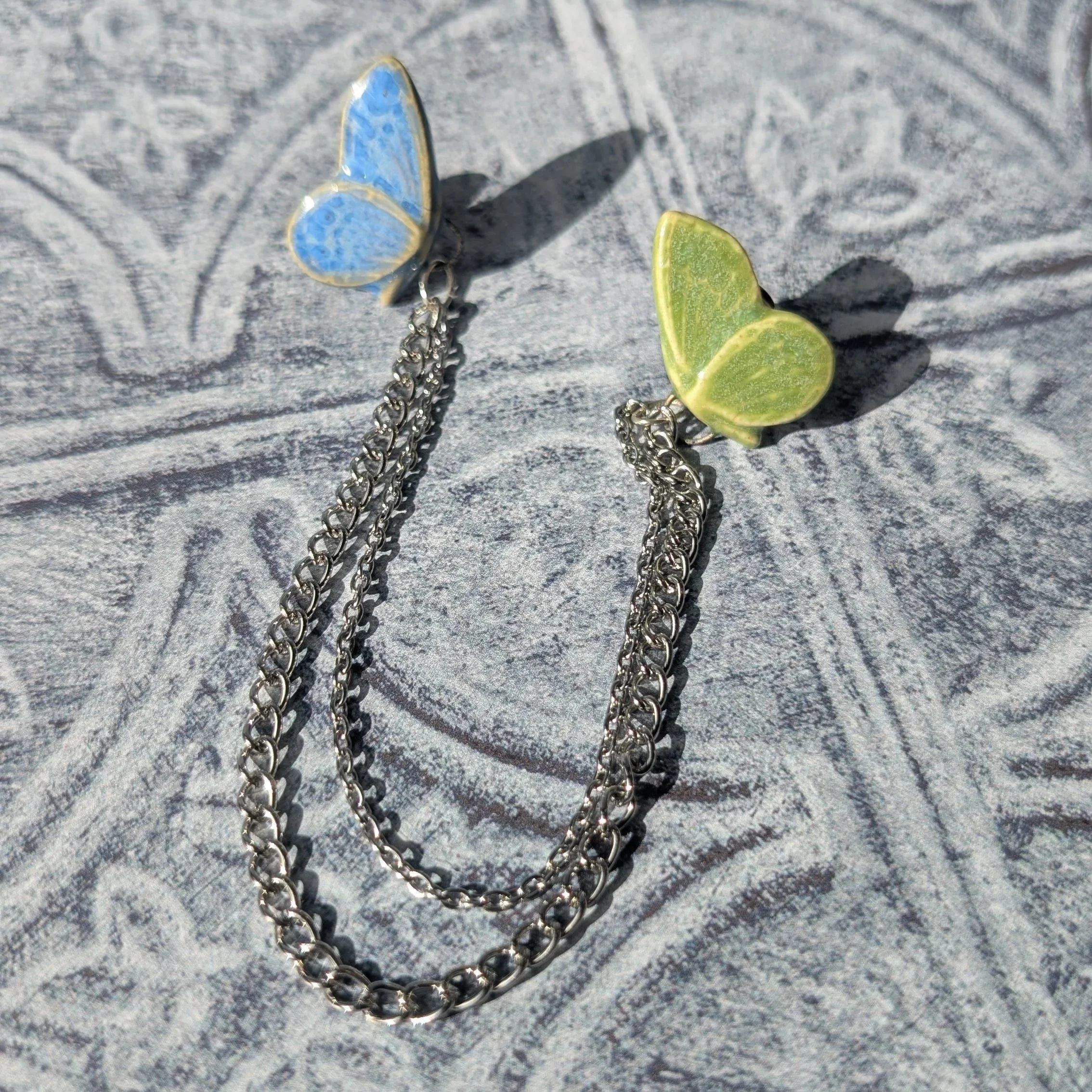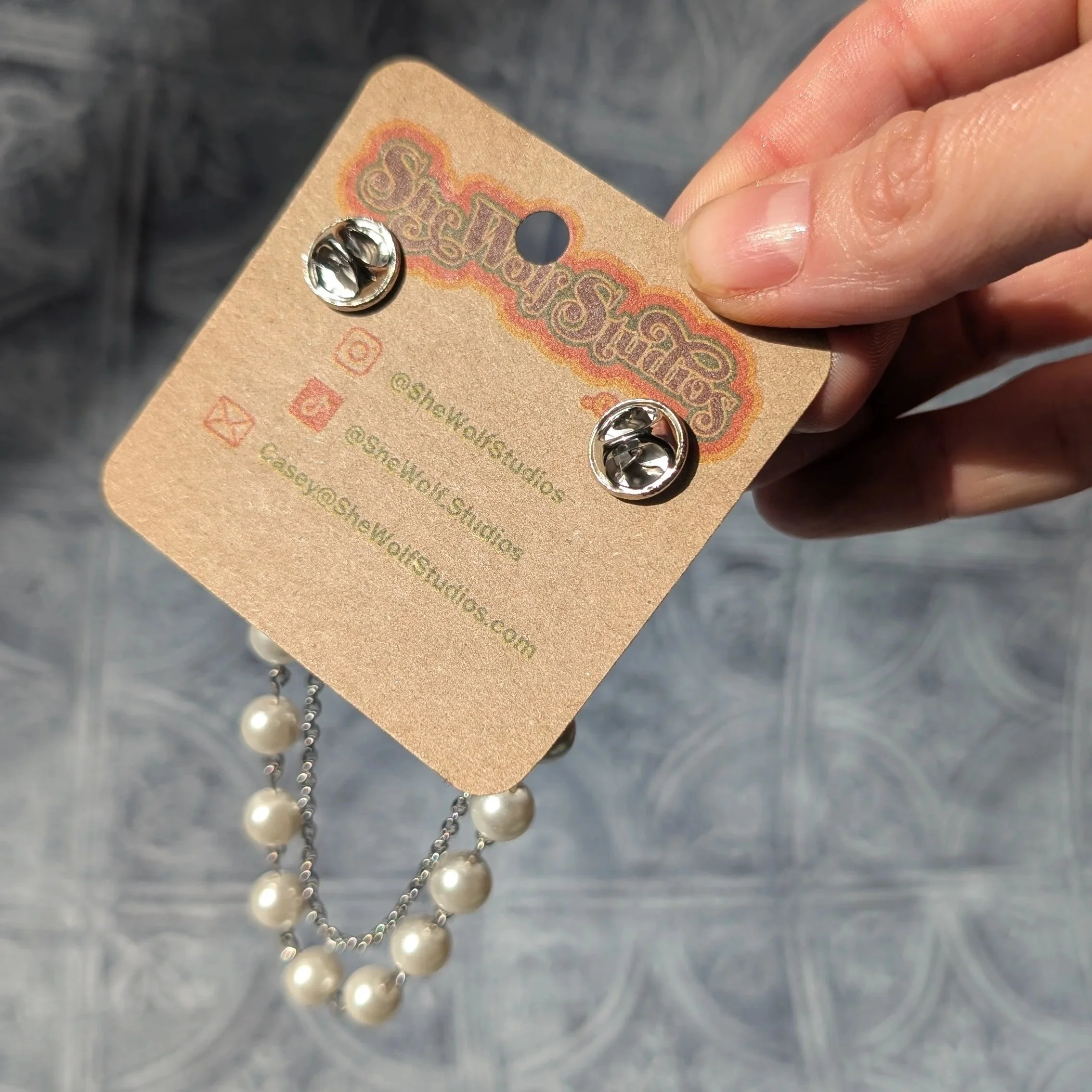 These pins are made to be worn with a collared shirt, a cardigan, or even a cape. I love the idea of taking a formal accessory and adding some funky flare to it. These attach with a pin on the back of each charm.