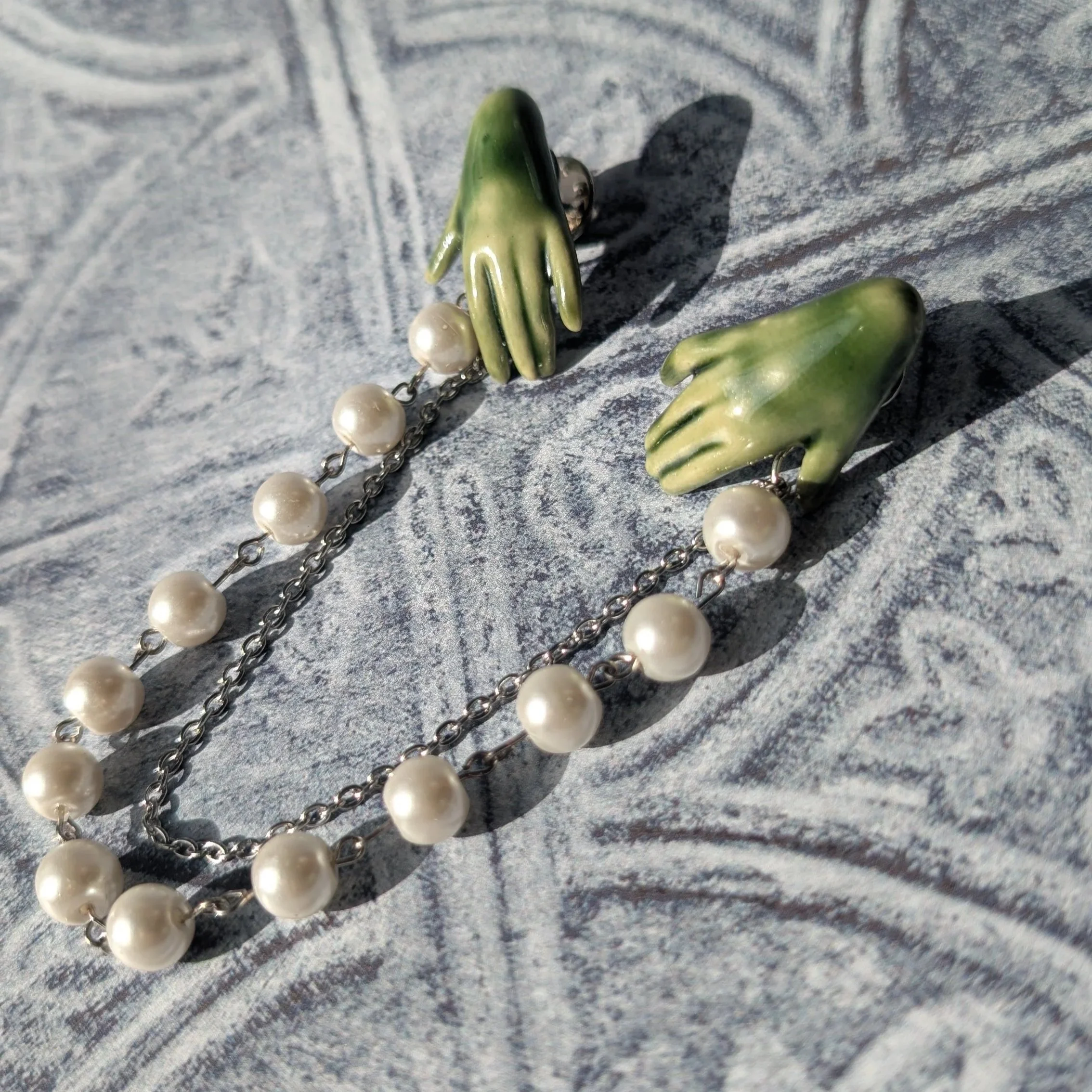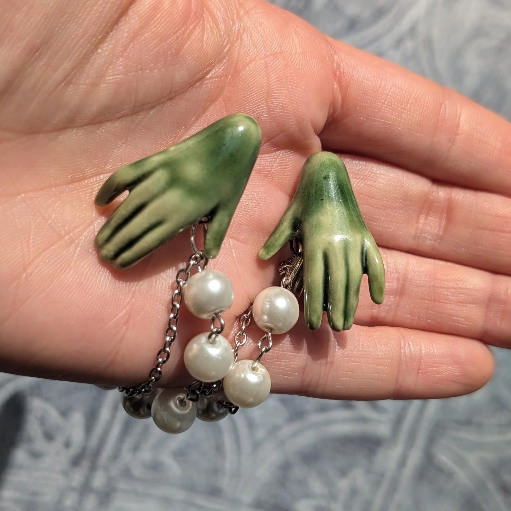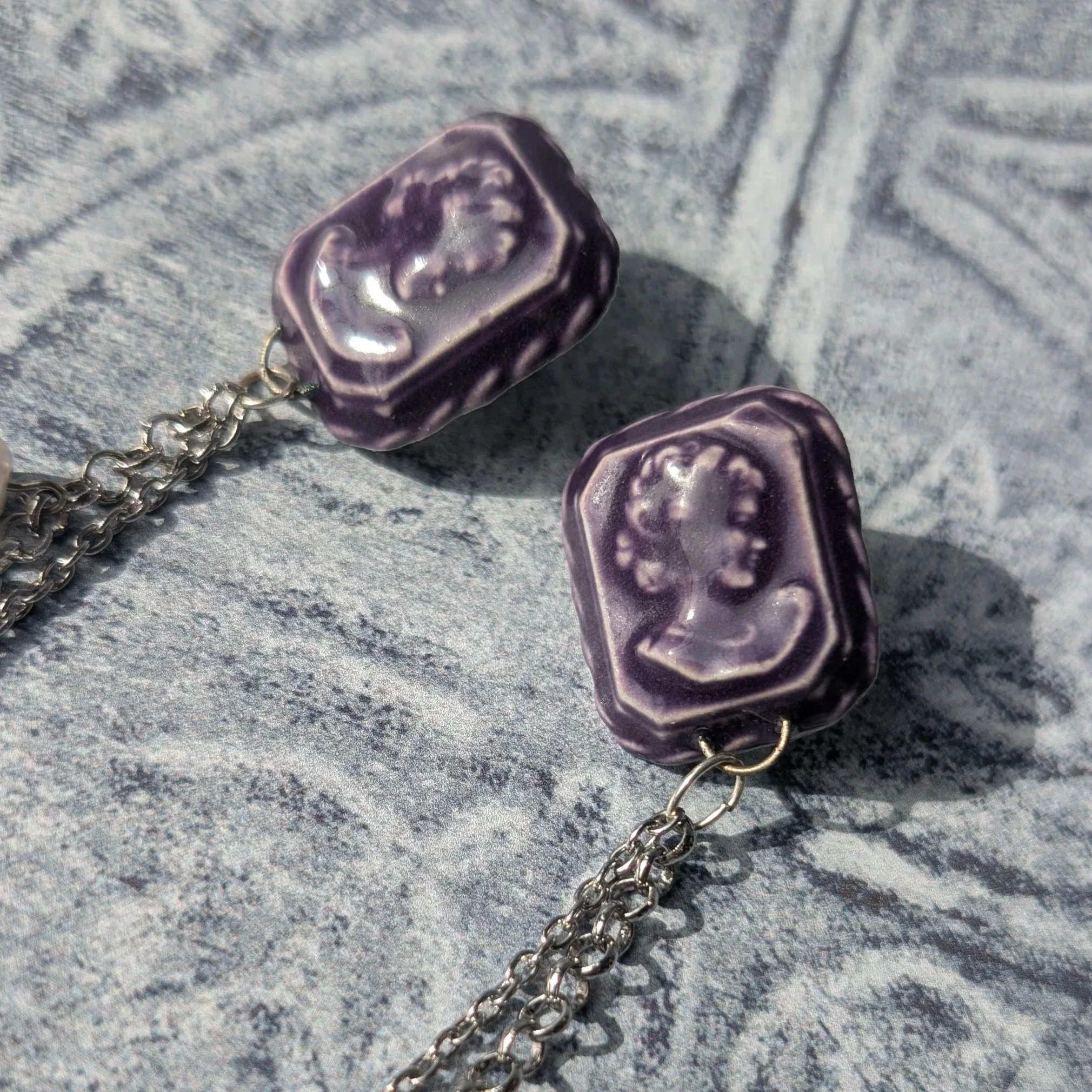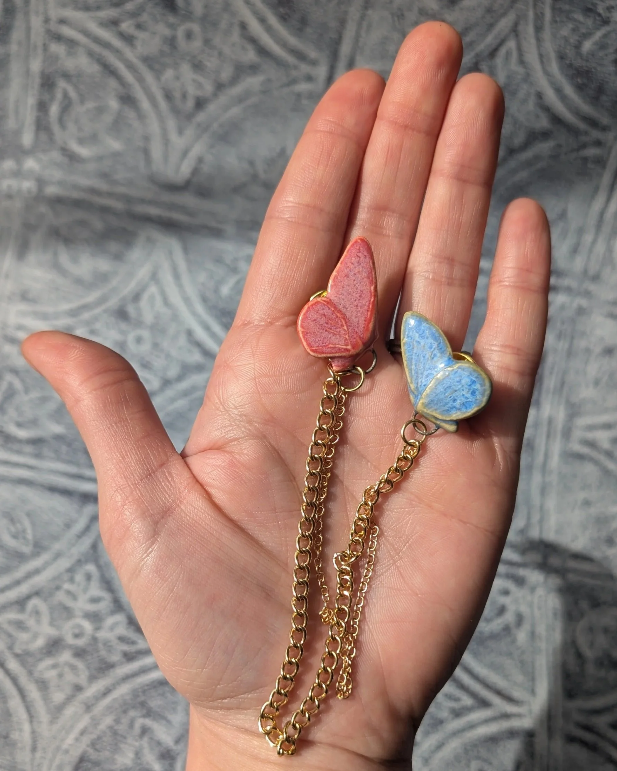 These pins are made to be worn with a collared shirt, a cardigan, or even a cape. I love the idea of taking a formal accessory and adding some funky flare to it. These attach with a pin on the back of each charm.