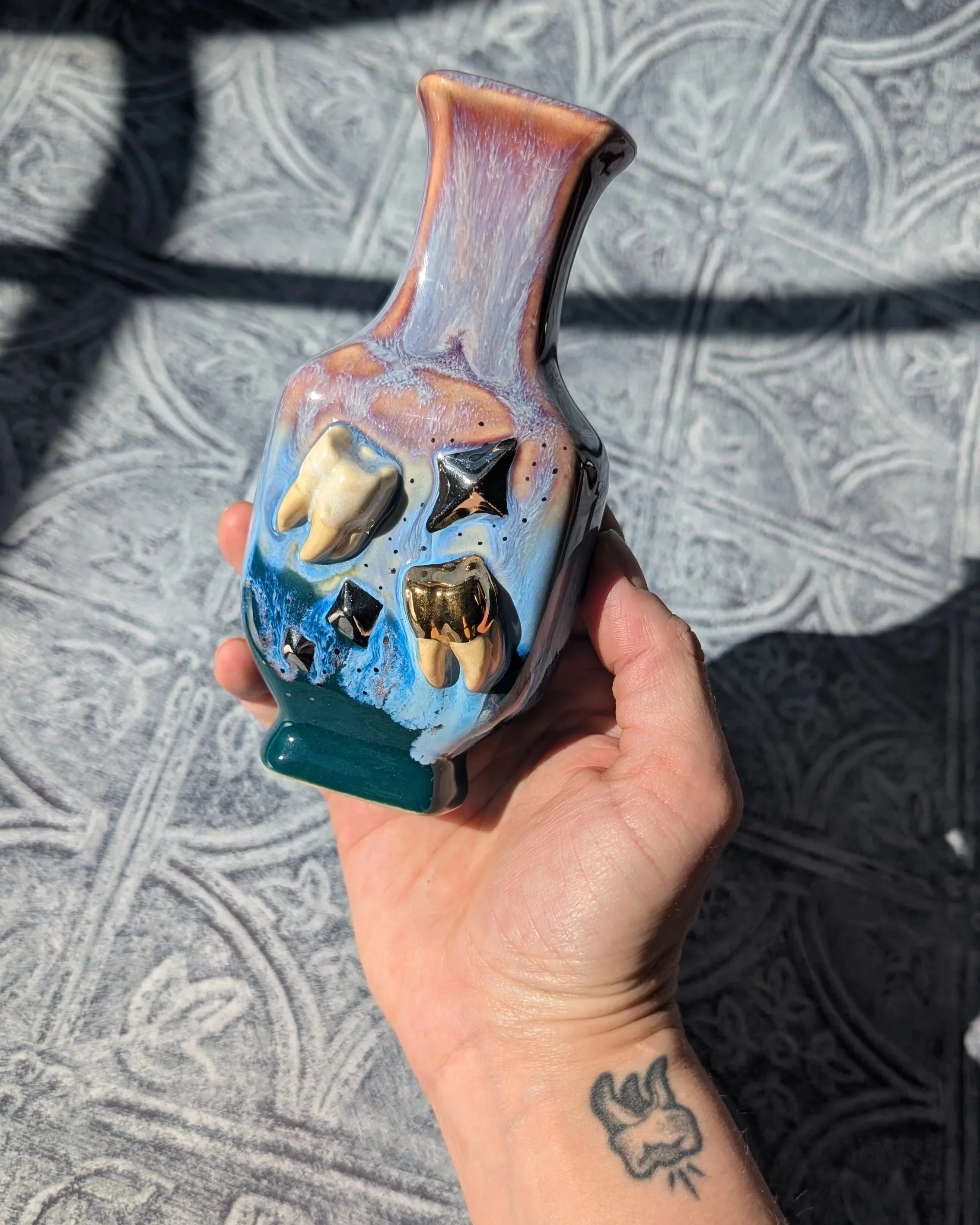 SheWolf functional wares are designed to sit comfortably in your hand, and to pack a powerful punch! I created these in an effort to provide a smooth hard hitting experience, with added durability and funky designs. You will find yourself reaching for this piece at every opportunity!