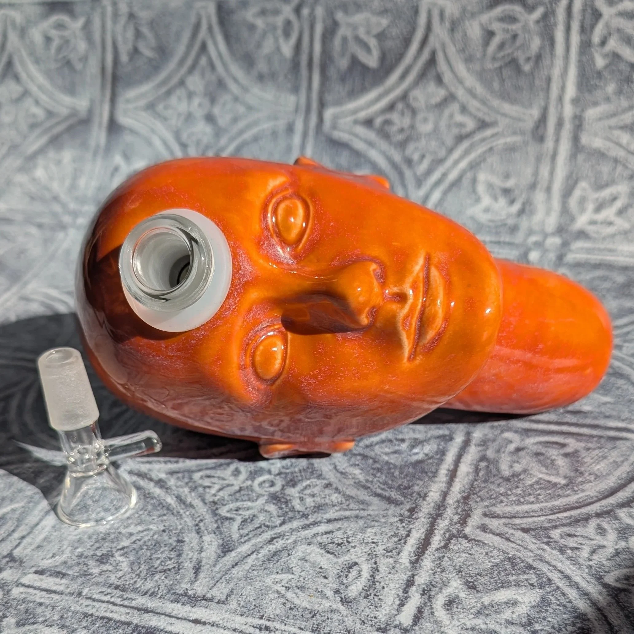 The XL Doll Heady comes with a glass slide and “straw”. Just add water and bubble away!