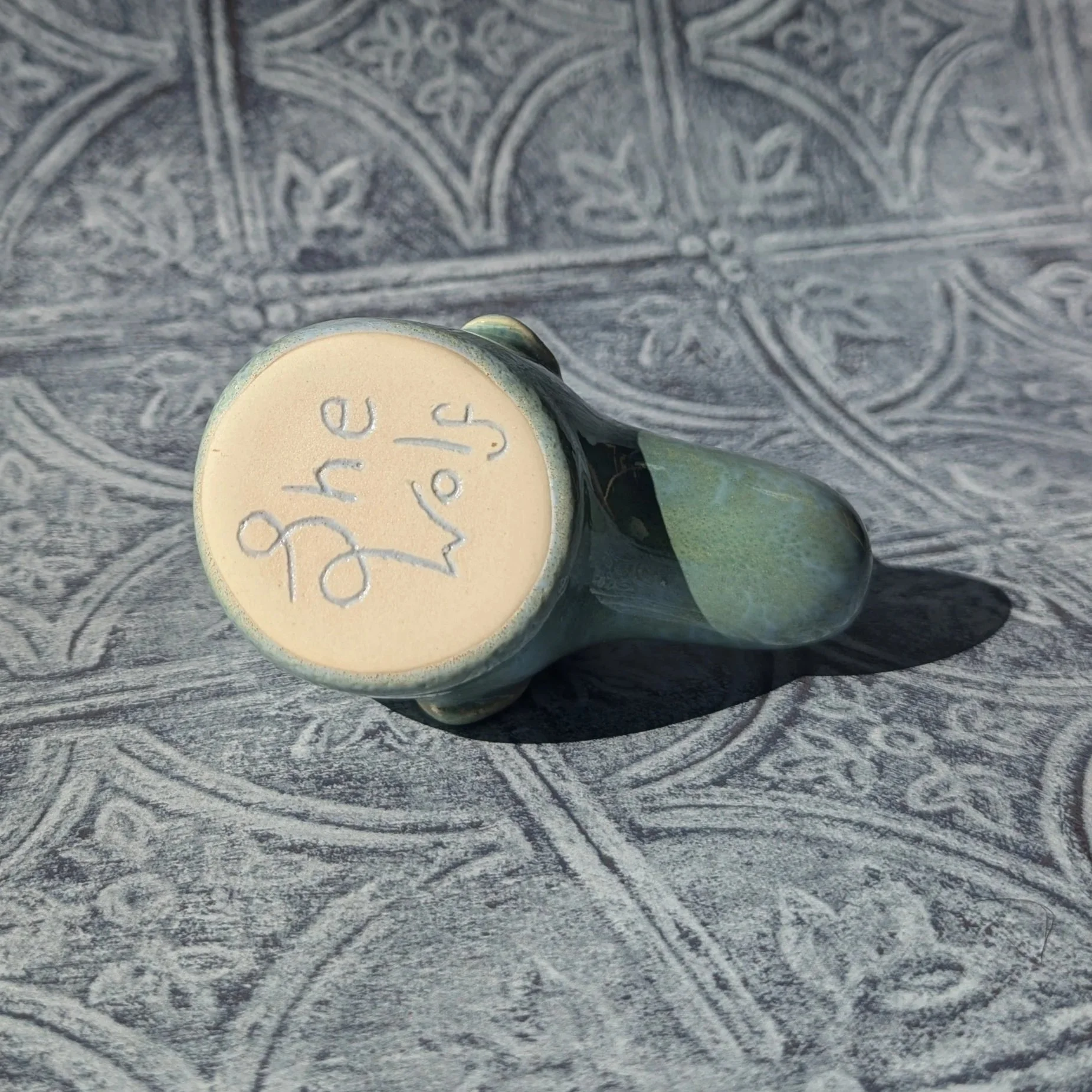 Each piece is made to be used and proudly displayed in the home as décor. SheWolf ceramics are made with durable clay, fired to around 2200°, and finished with stunning high-quality glazes. Each piece is fully coated in glaze and can be cleaned just like glass. See the FAQ page for care instructions.