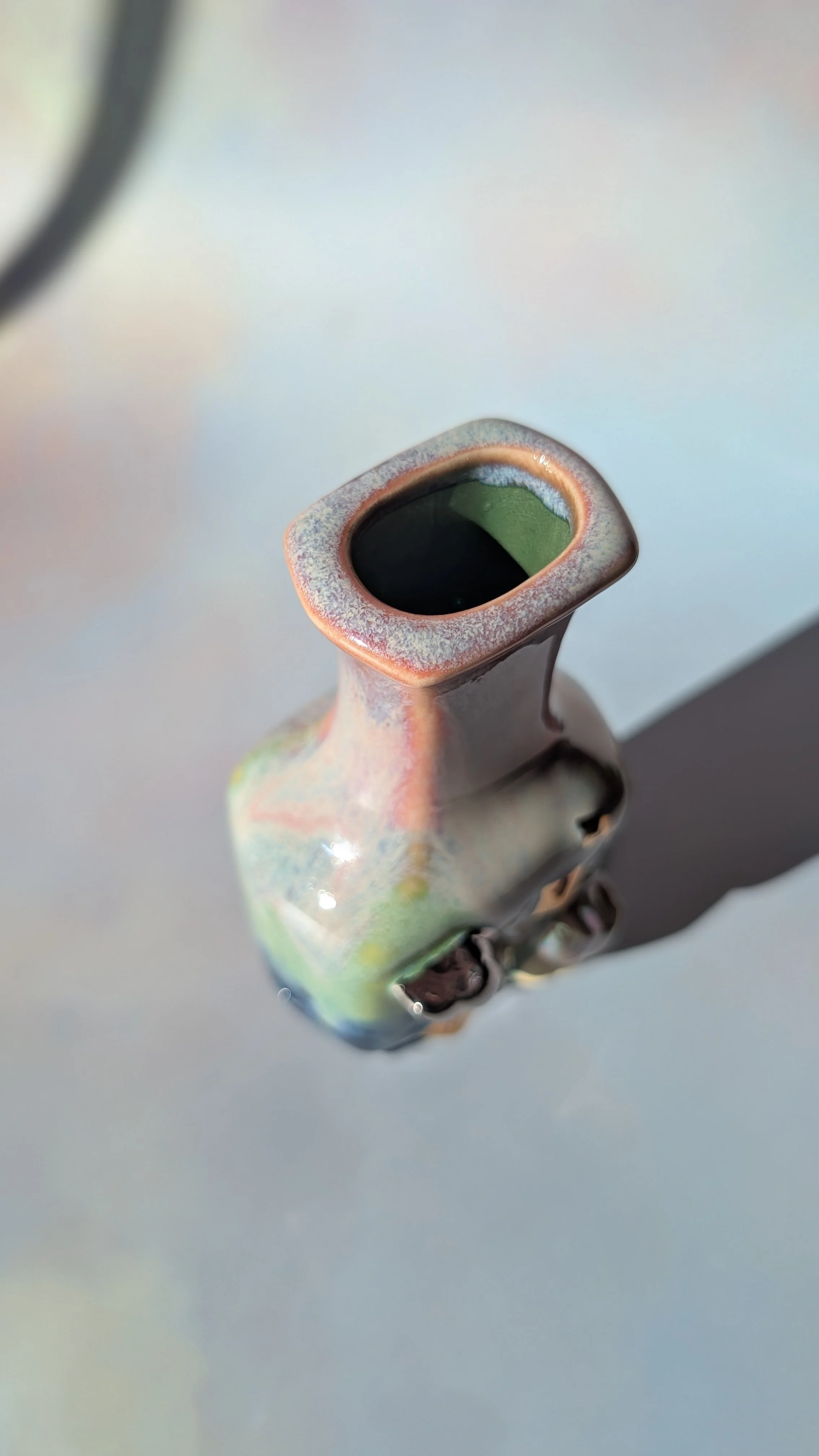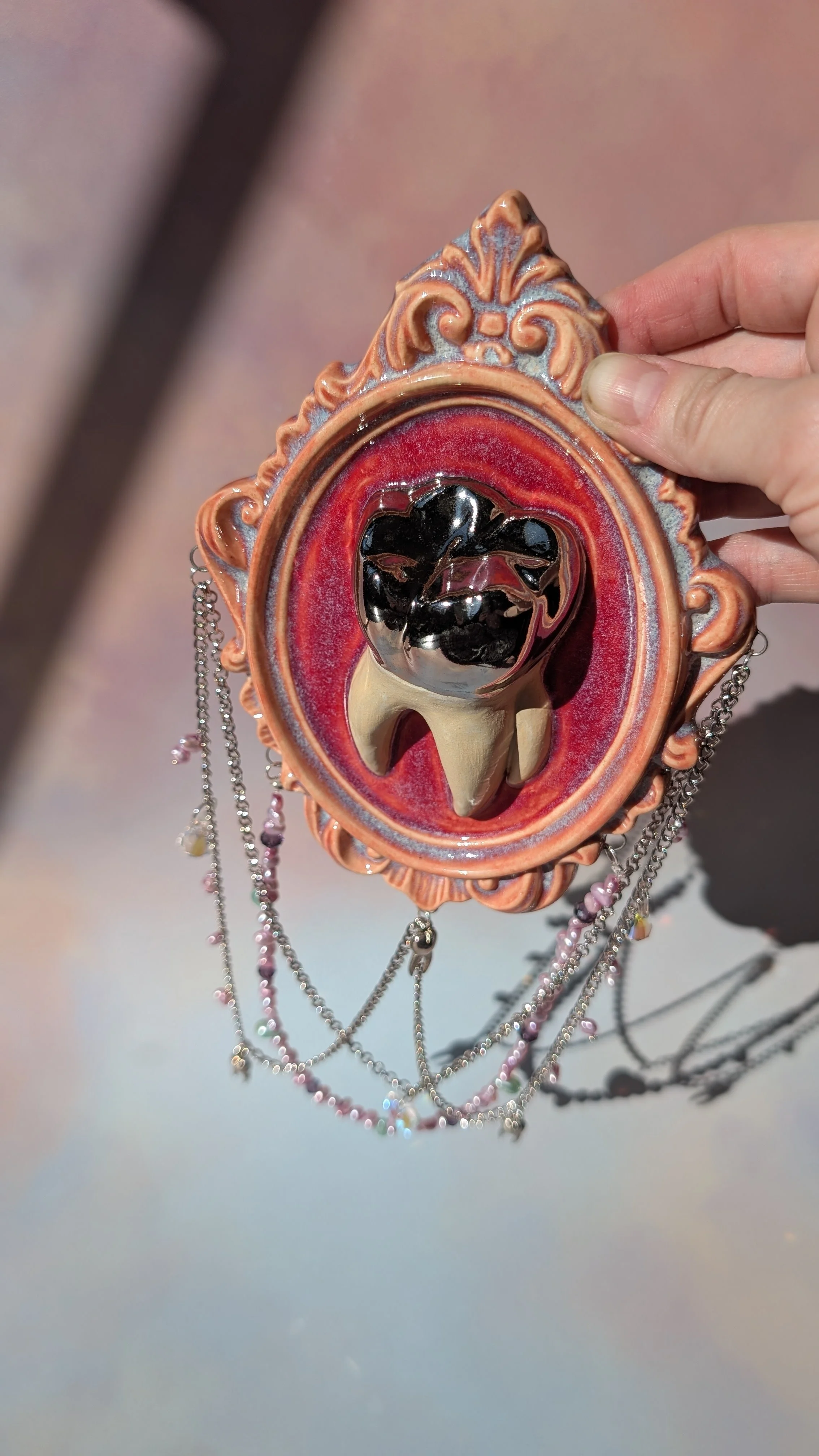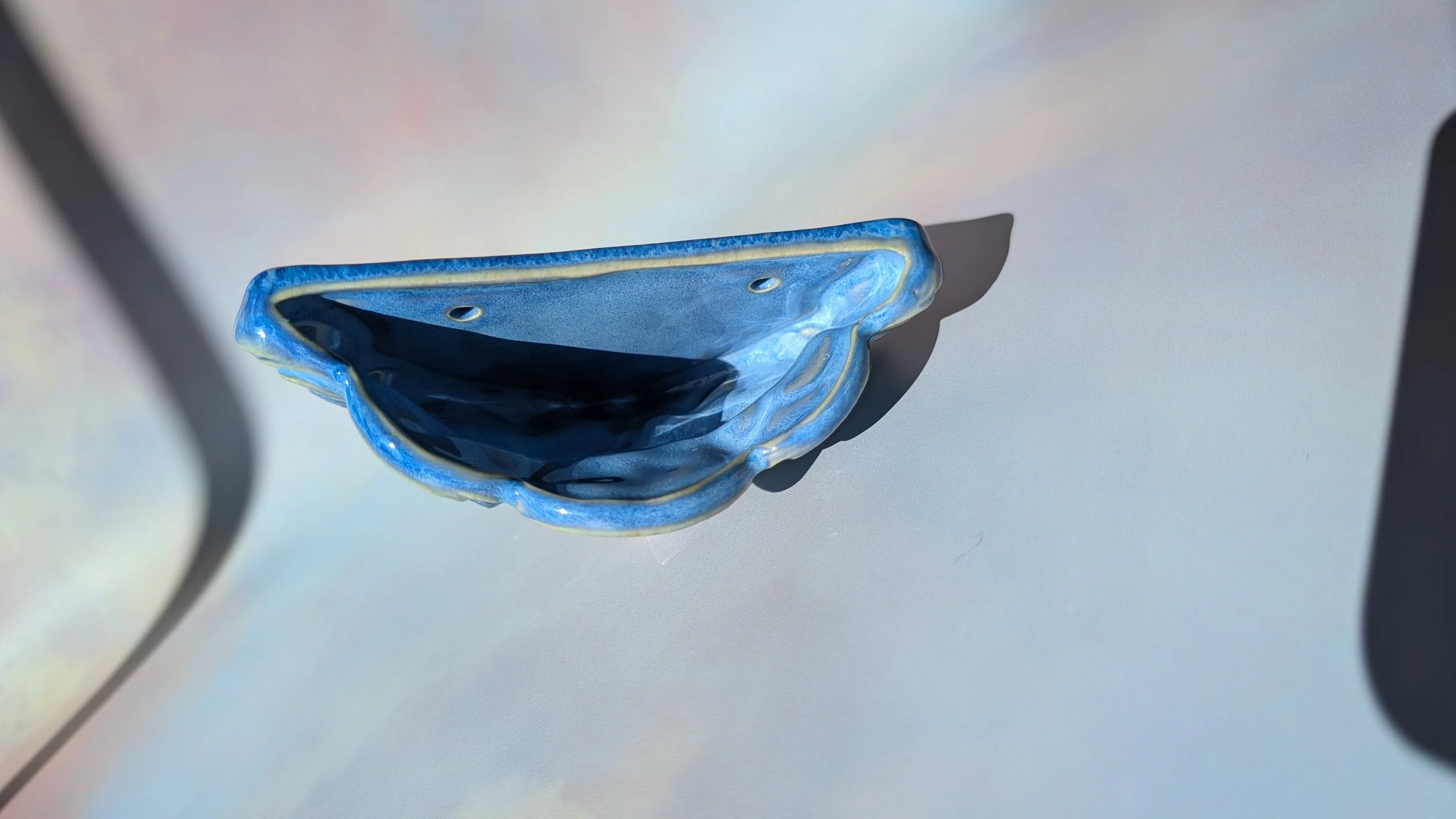 Collect the cursed and save your home from beige and boring! This wall cavity hanging vase / trinket pocket is fully glazed on the interior and able to hold water.
