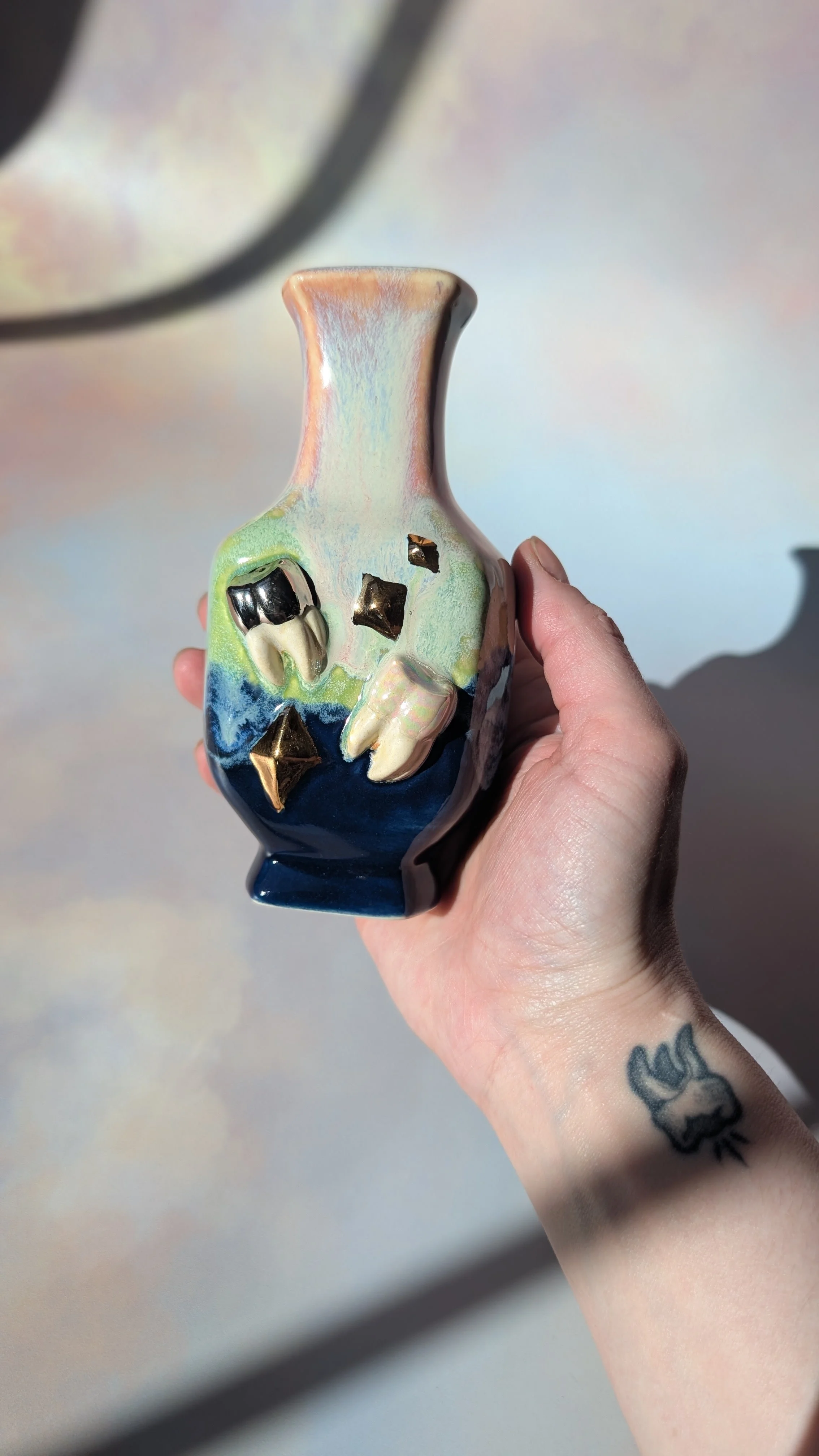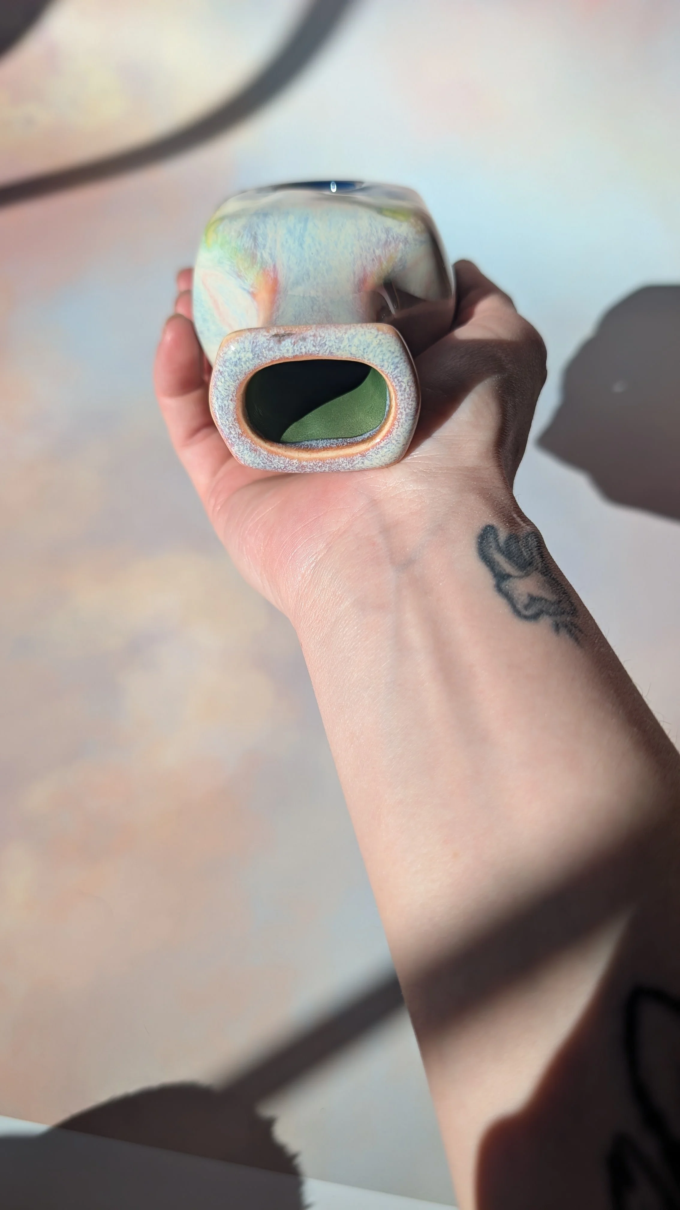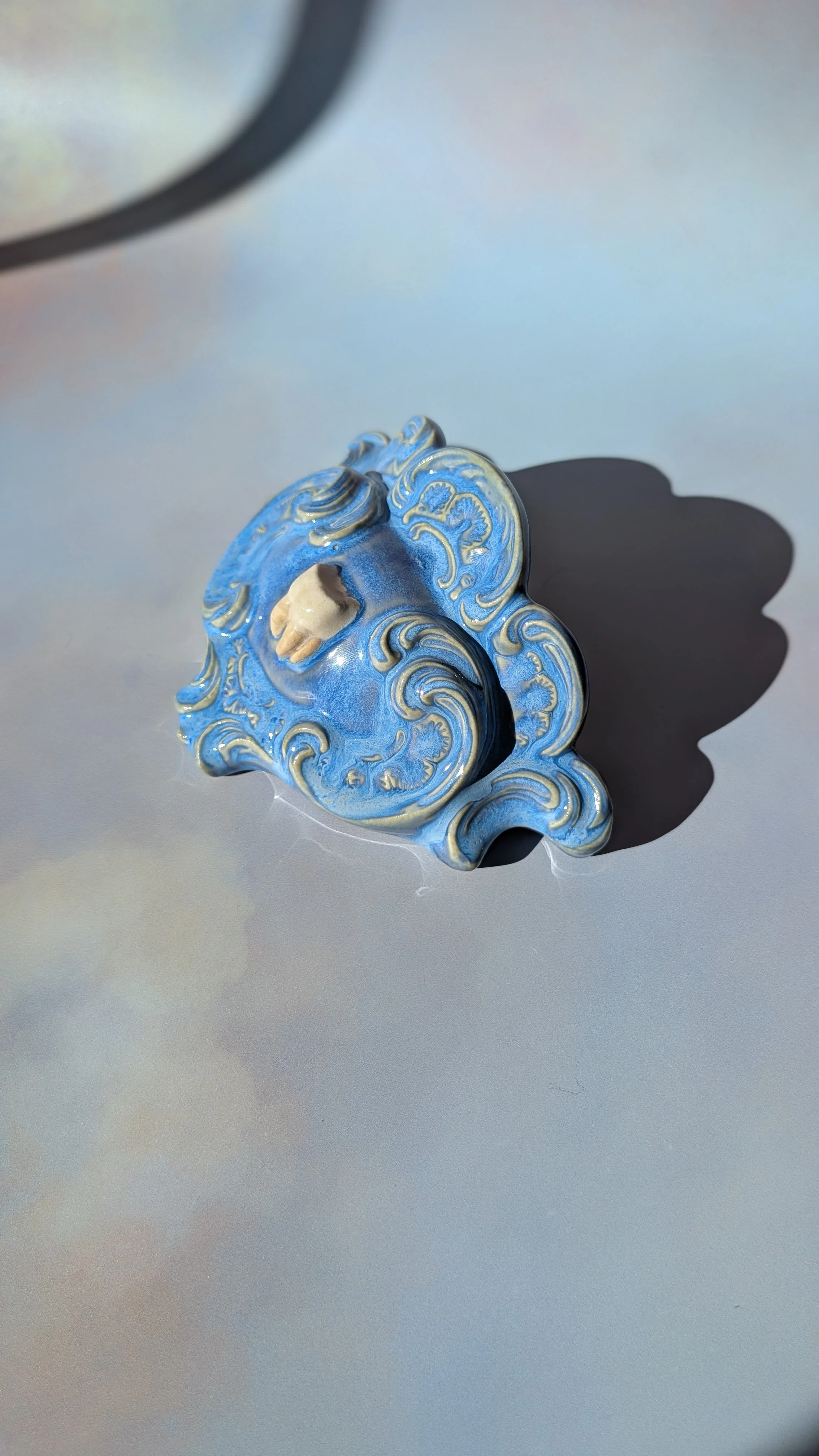 Collect the cursed and save your home from beige and boring! This wall cavity hanging vase / trinket pocket is fully glazed on the interior and able to hold water.