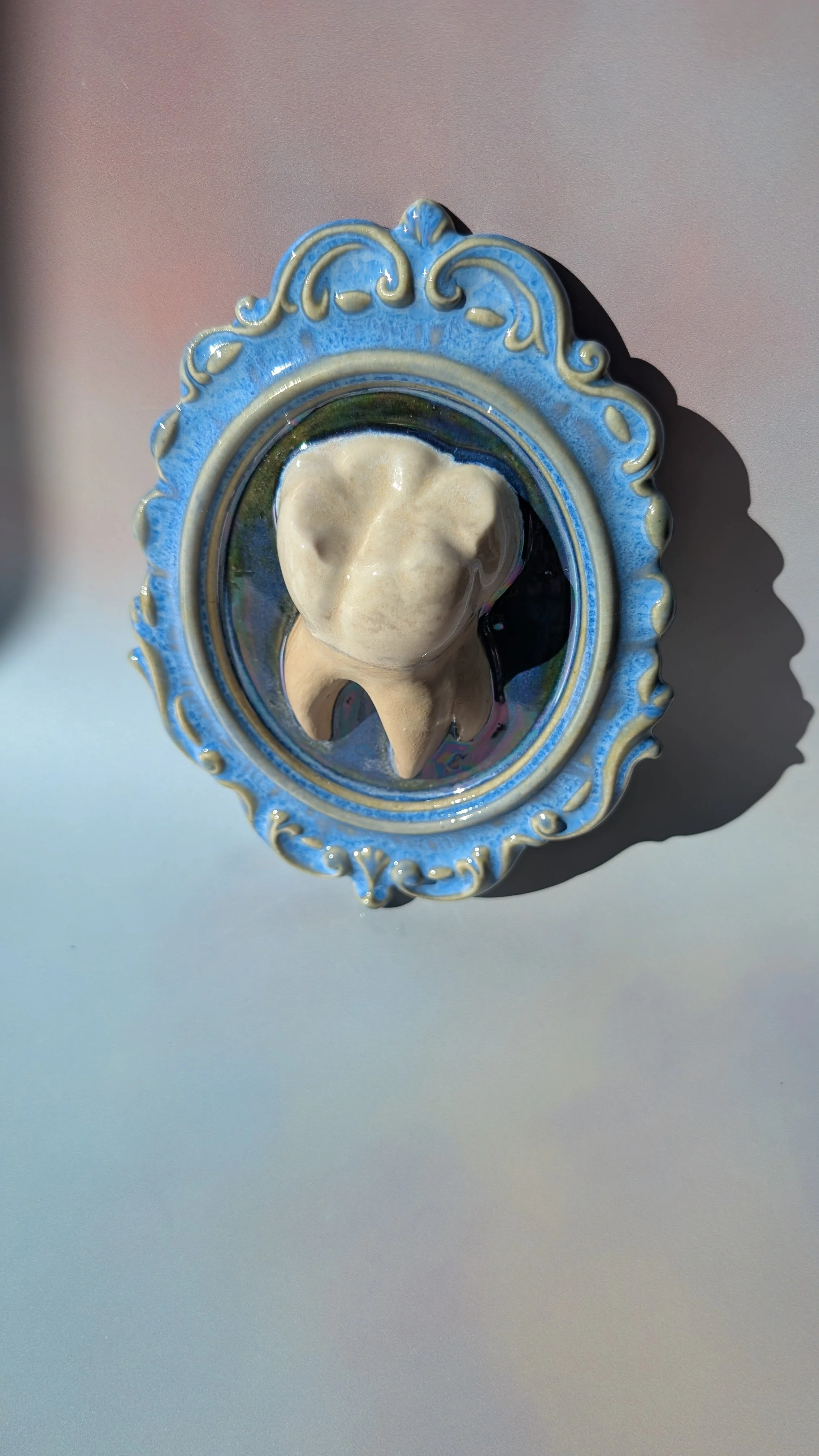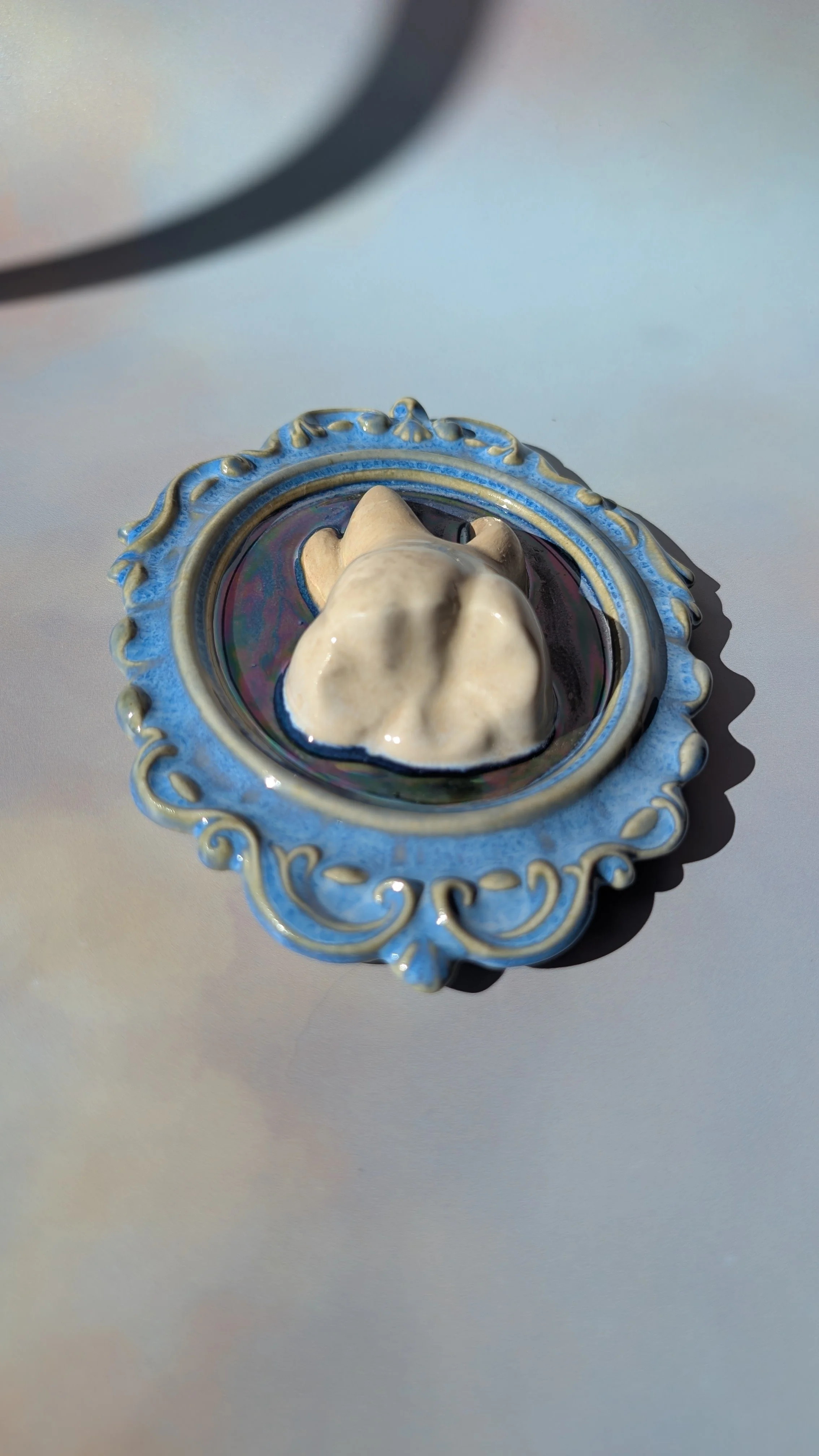 Collect the cursed and save your home from beige and boring! This wall cavity hanging vase / trinket pocket is fully glazed on the interior and able to hold water.